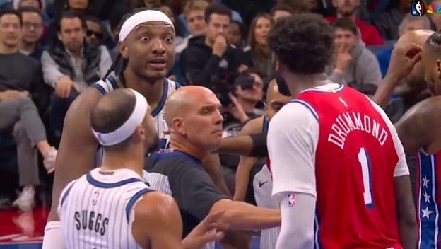 裁判在回看录像后,吹罚挑事的萨格斯技术犯规,且被直接驱逐出场,贝恩、卡特、沃克和德拉蒙德均吃T。魔术方面4T,76人方面则是两T,裁判合计吹罚6T,卡特被驱逐出场。